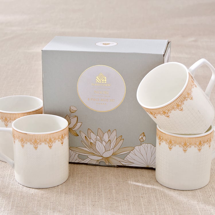 Noori Swan Set of 4 Bone China Printed Director Coffee Mugs - 220ml