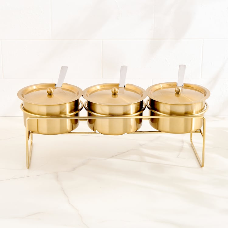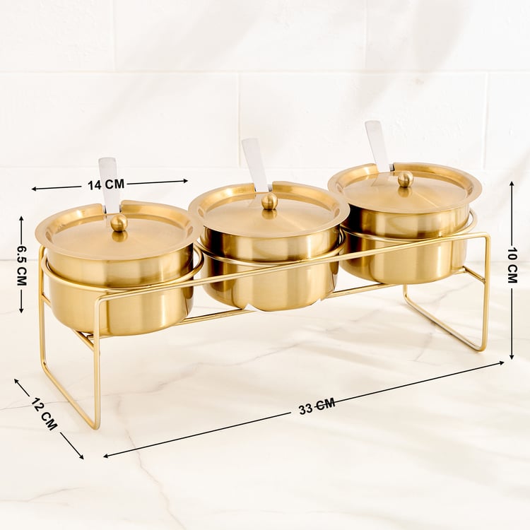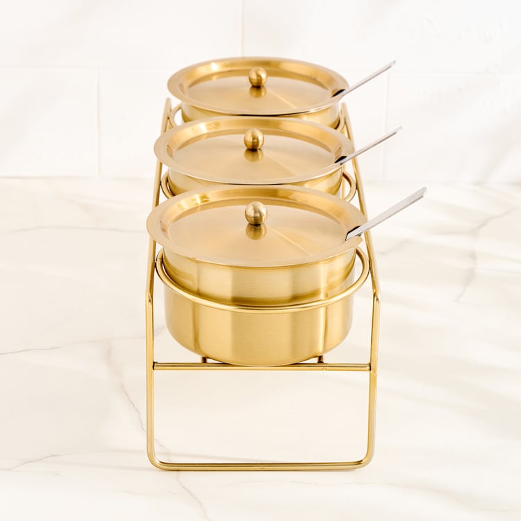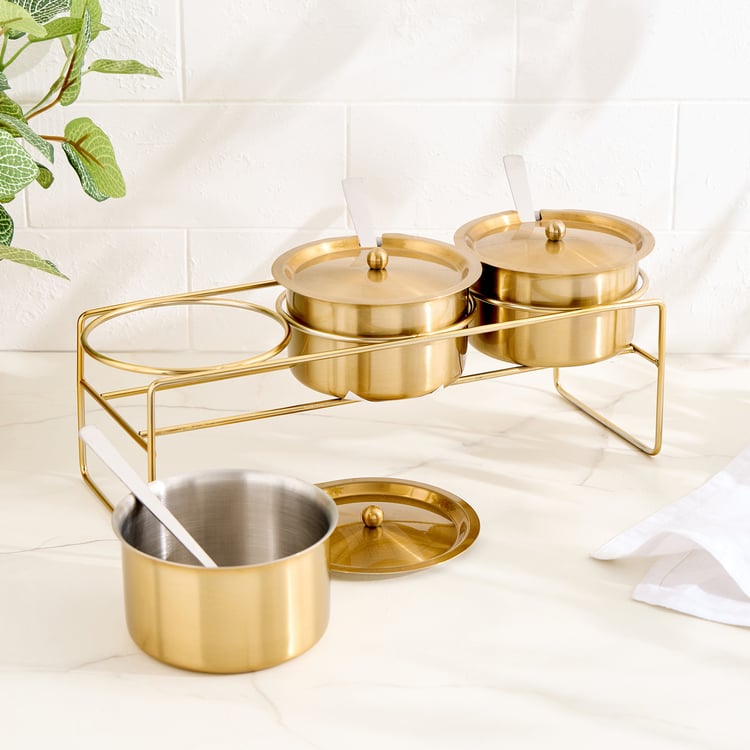 3 Serving Bowls with Lids, 3 Spoons, 1 Stand