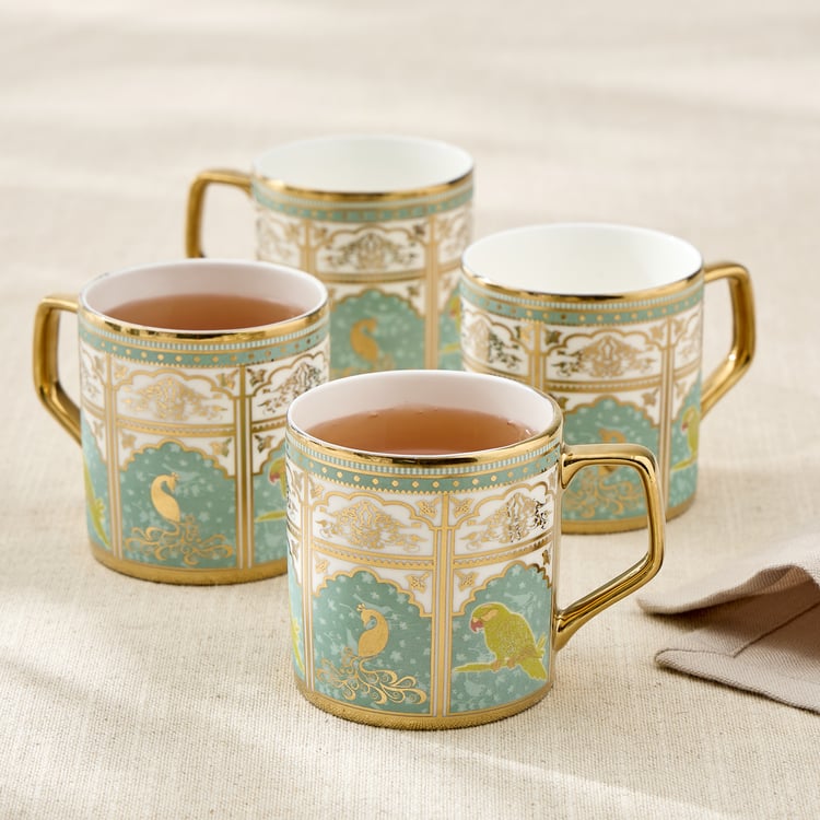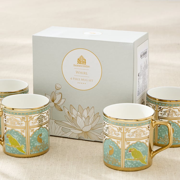 Whirl Director Set of 4 Bone China Printed Coffee Mugs - 220ml