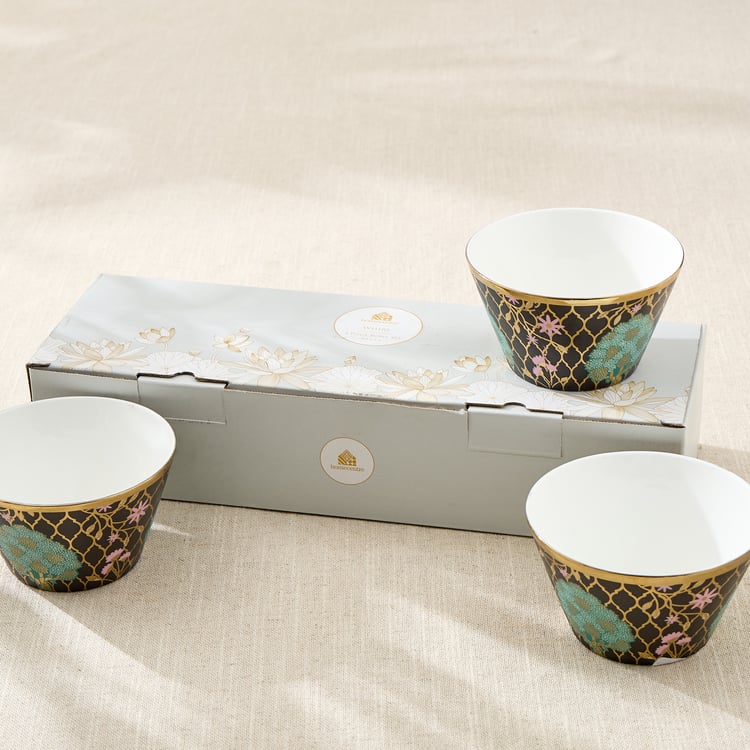 Whirl Emily Set of 3 Bone China Printed Bowls - 320ml