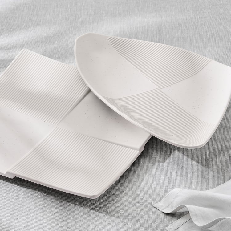 Elevate your table setting with this melamine platter. Sturdy and BPA-free, it features an organic shape with ribbed detailing, perfect for stylishly serving snacks, sides, or appetisers.