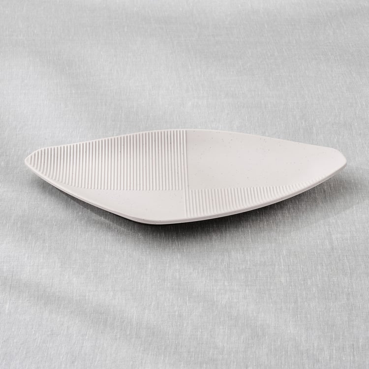 Elevate your table setting with this triangular melamine platter. Sturdy and BPA-free, it features an organic shape with ribbed detailing, perfect for stylishly serving snacks, sides, or appetisers.