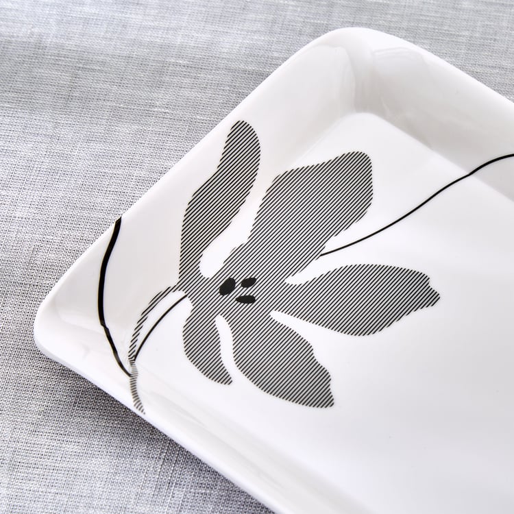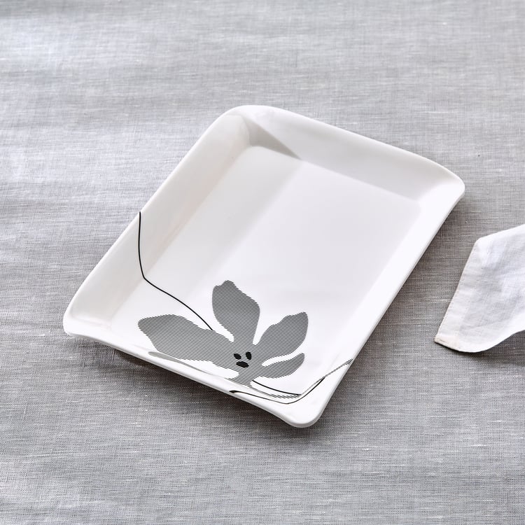 Meadows Monochrome Melamine Printed Serving Tray - 23.5x17.5cm