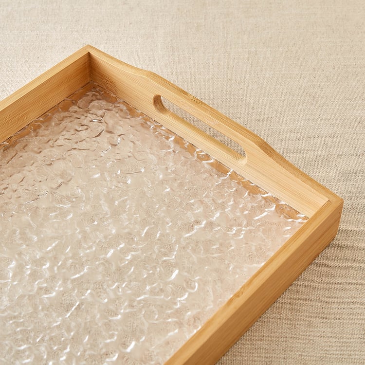 Serve with style using this bamboo serving tray accented with an acrylic panel for a modern touch. Ideal for everyday use or entertaining, it adds natural elegance to your decor.