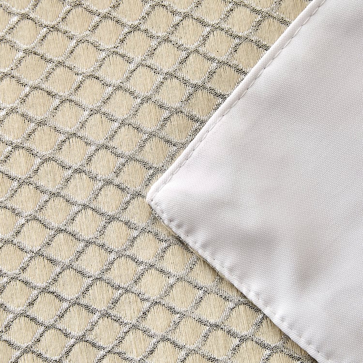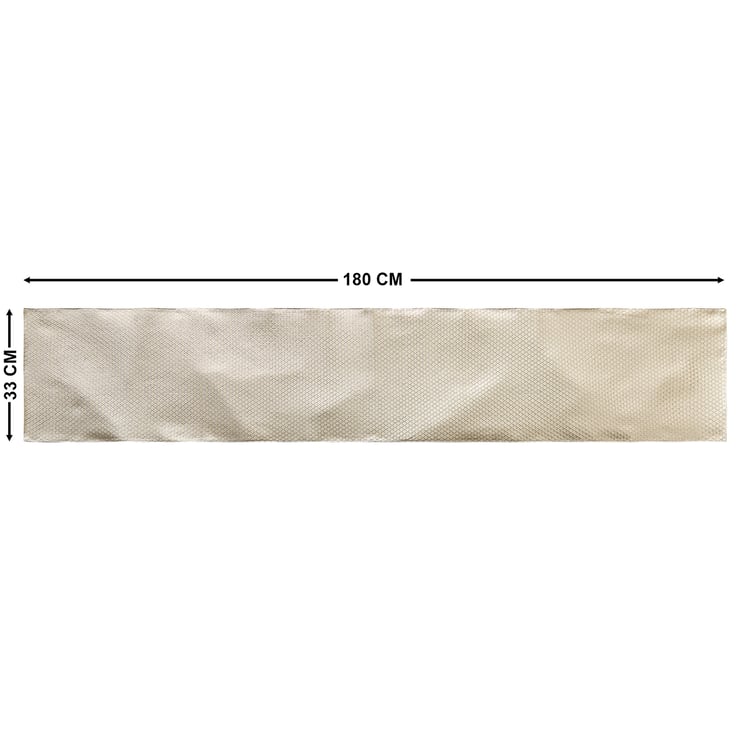 This jacquard polyester table runner features elegant zari texture, adding subtle shimmer to dining spaces while protecting surfaces with durable, easy-care construction and refined everyday style.