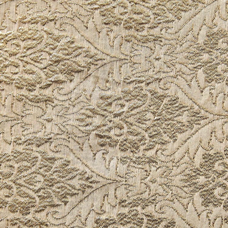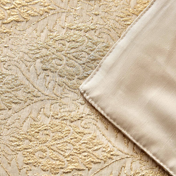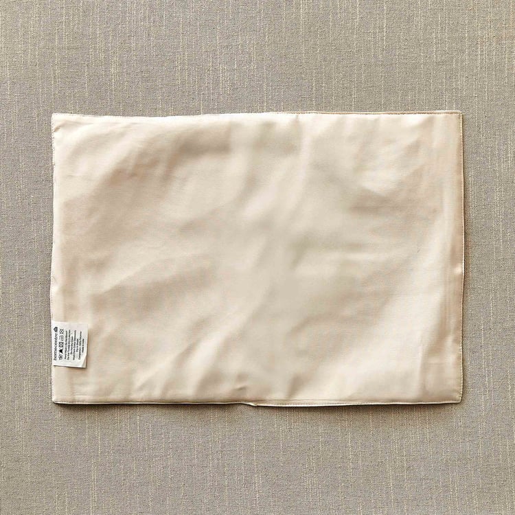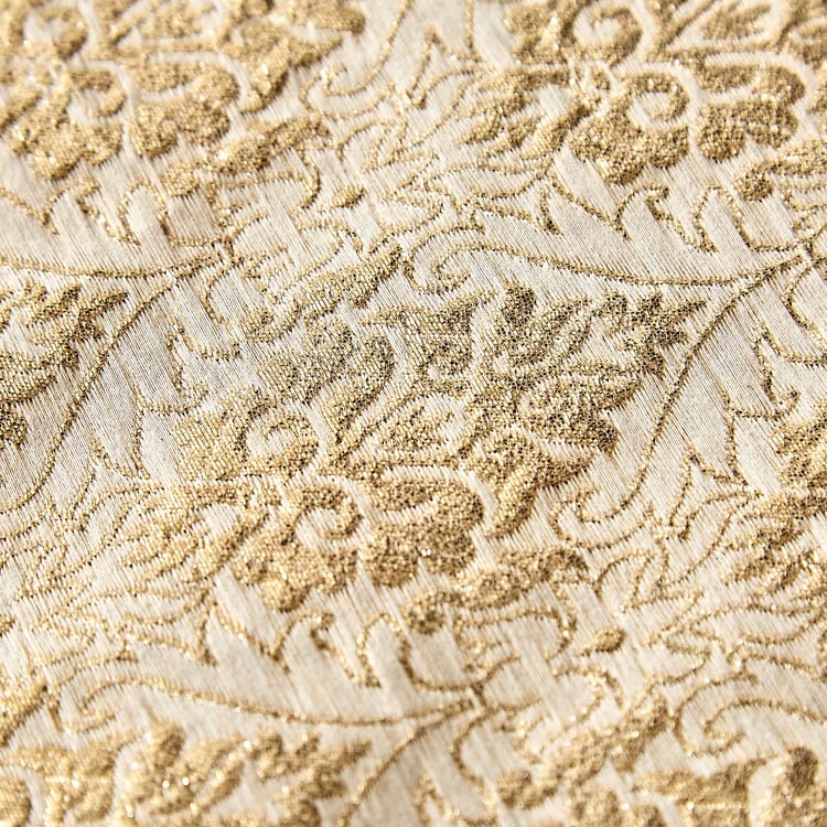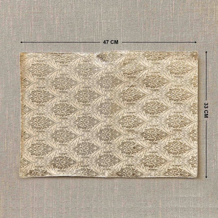 This jacquard polyester placemat features elegant zari texture, adding subtle shimmer to dining spaces while protecting surfaces with durable, easy-care construction and refined everyday style.