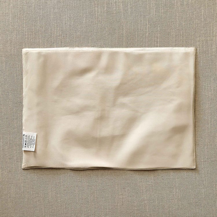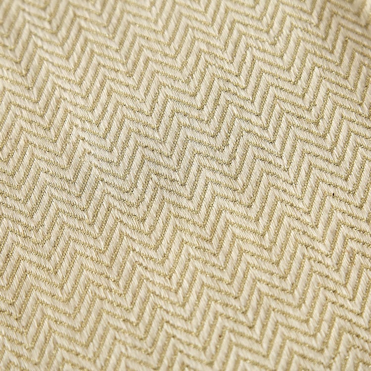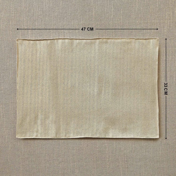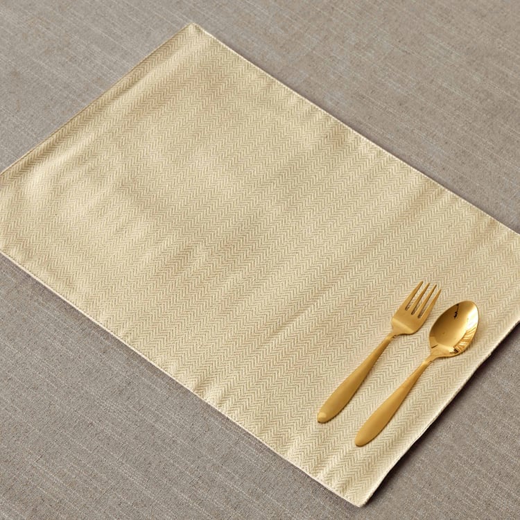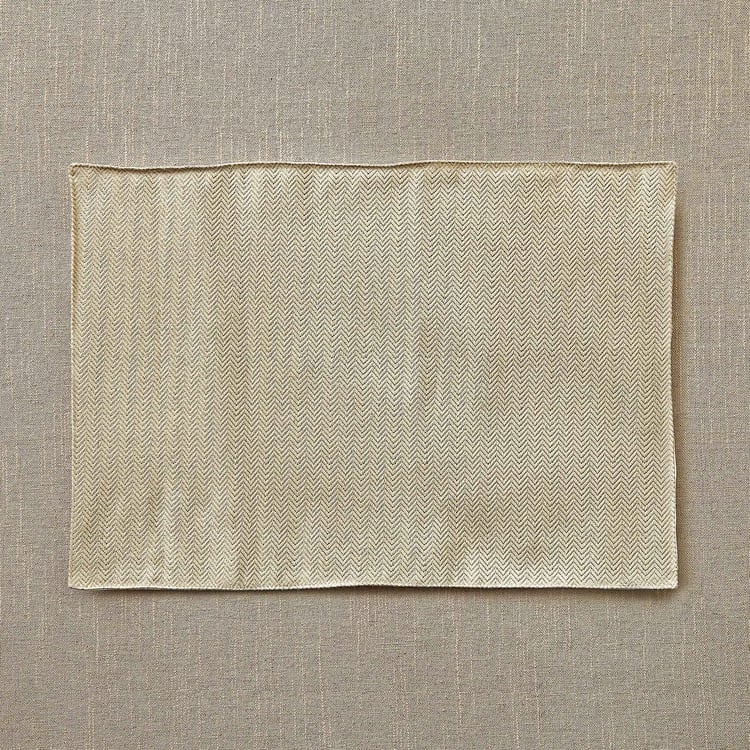 This jacquard polyester placemat features elegant zari texture, adding subtle shimmer to dining spaces while protecting surfaces with durable, easy-care construction and refined everyday style.