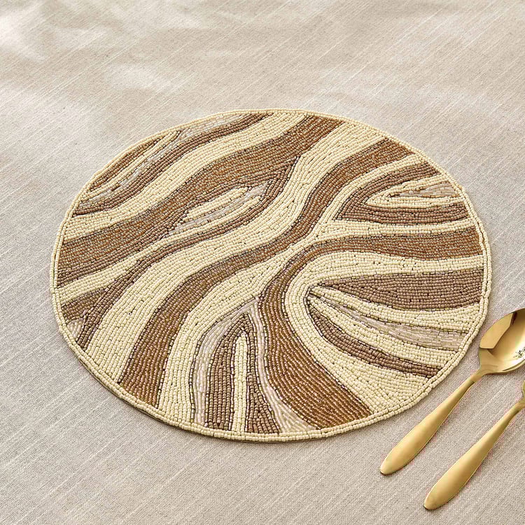 Beautifully handcrafted with intricate beadwork, this placemat adds elegance and charm to any dining setup, making it perfect for special occasions and creating a warm, festive atmosphere.