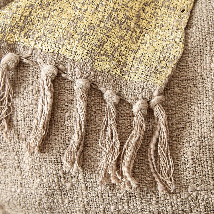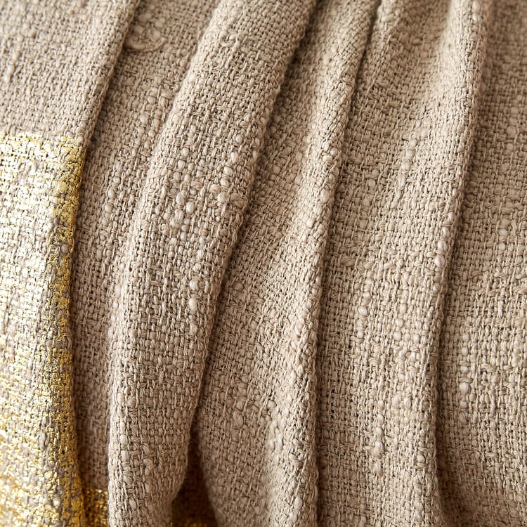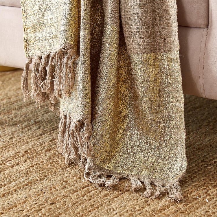 This cotton single throw features soft, breathable fabric with foil prints and decorative tassels for added charm. It offers cozy warmth, easy styling, lasting comfort, and an elegant accent.