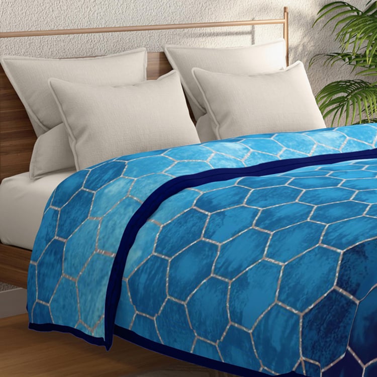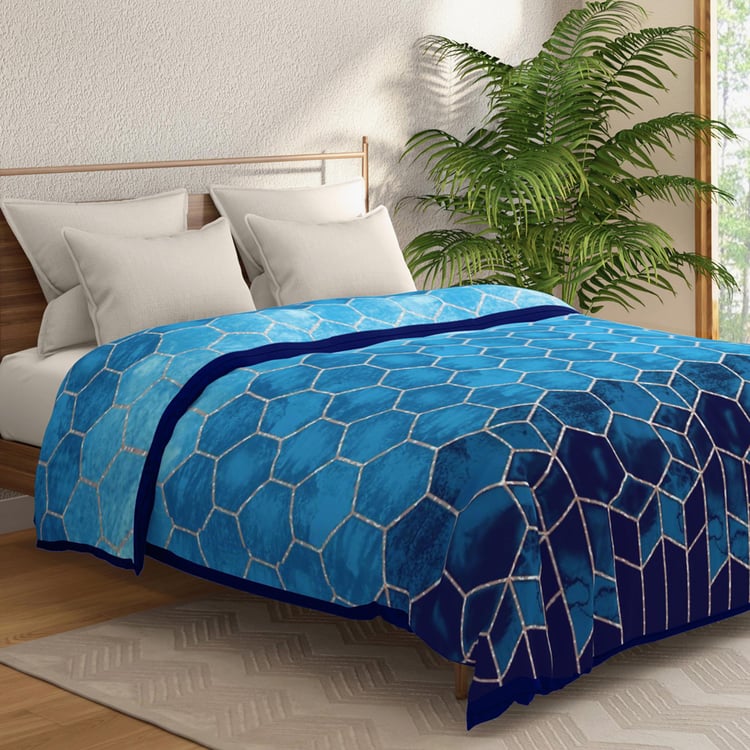 PORTICO Montana Blue Printed Cotton Double Blanket - 210 x 240 cm