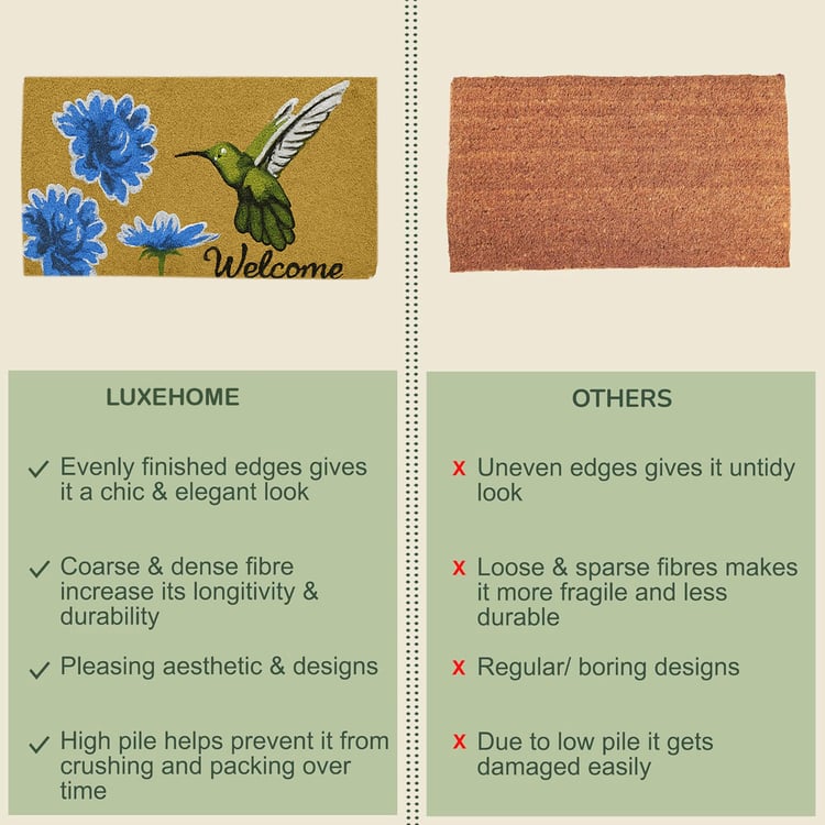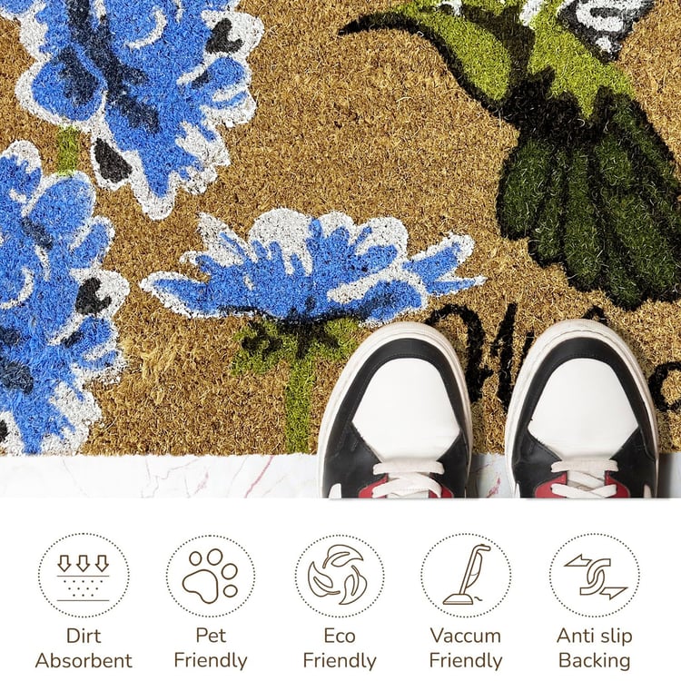 Upgrade your entrance with this 100% coir mat, crafted from premium natural coconut coir for effective dirt removal. Featuring a stylish floral print, this durable and eco-friendly doormat blends strength, cleanliness, and elegance effortlessly.