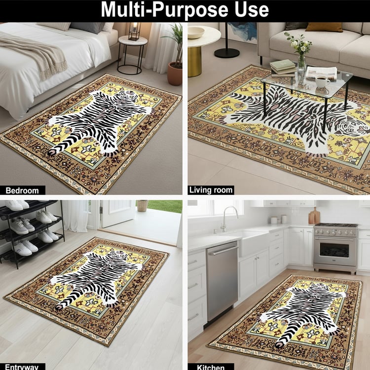 Elevate your space with this cotton carpet, featuring an elegant Tiger print. Soft, durable, and anti-slip, it adds cosy comfort and modern charm to any room while being easy to maintain for everyday use.