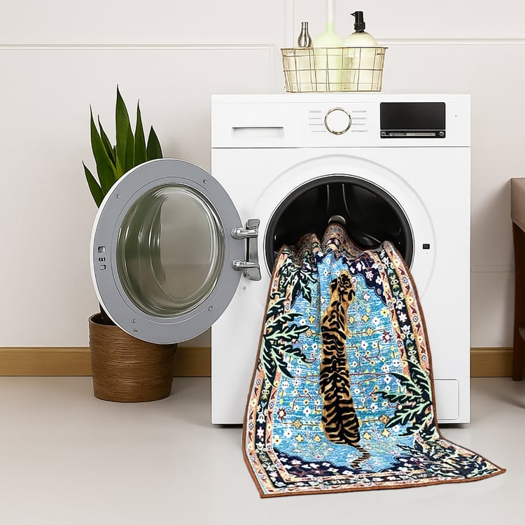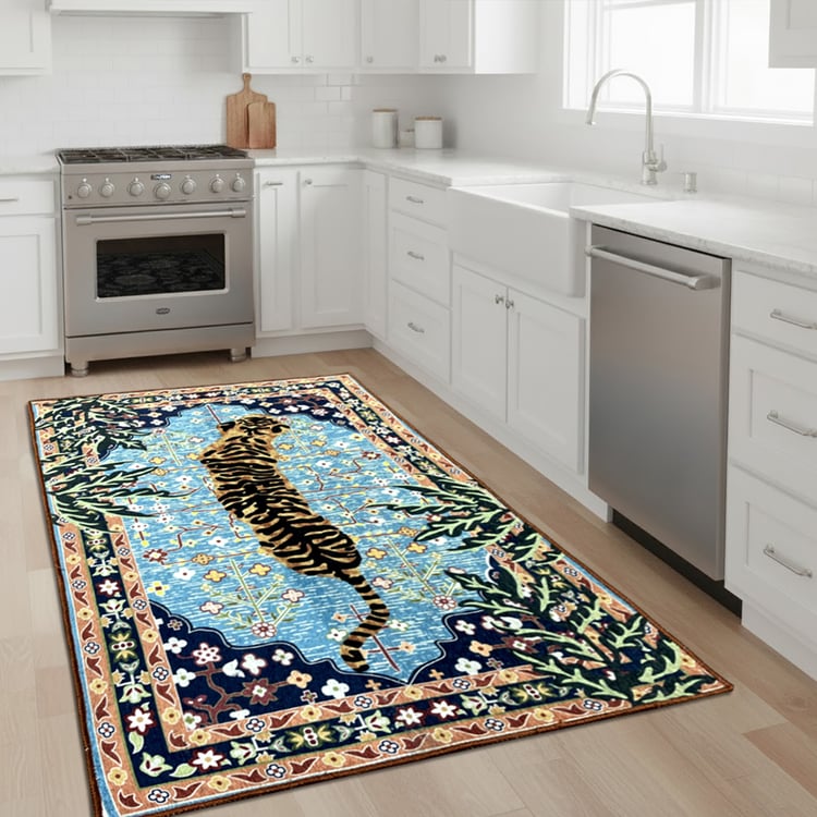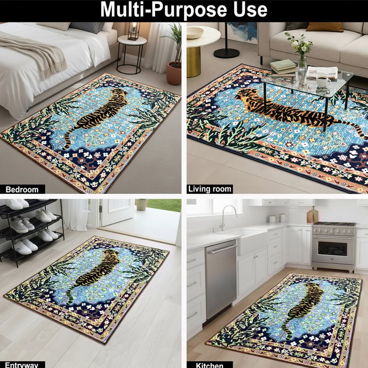 Elevate your space with this cotton carpet, featuring an elegant tiger print. Soft, durable, and anti-slip, it adds cosy comfort and modern charm to any room while being easy to maintain for everyday use.