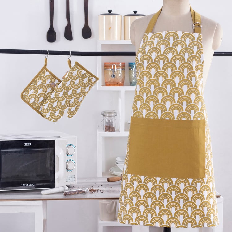 Cook in comfort and style with this kitchen apron, designed to bring both practicality and a polished look to your daily routine. Made from cotton fabric, it offers a soft, breathable feel with durability for regular use. Featuring ties, a printed design, and a functional pocket, this apron keeps essentials handy while adding a neat, coordinated touch to your cooking or baking time.