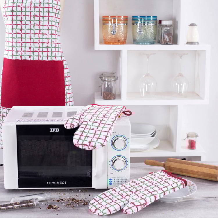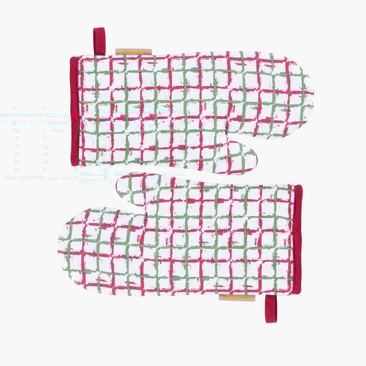 Handle the heat in style with this checked set of 2 cotton oven mitts, designed for comfort and reliable protection. Crafted from soft, durable fabric, they offer a secure grip and everyday ease in the kitchen.