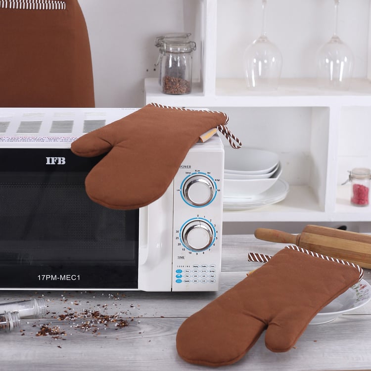 Handle the heat in style with this set of 2 cotton oven mitts, designed for comfort and reliable protection. Crafted from soft, durable fabric, they offer a secure grip and everyday ease in the kitchen.