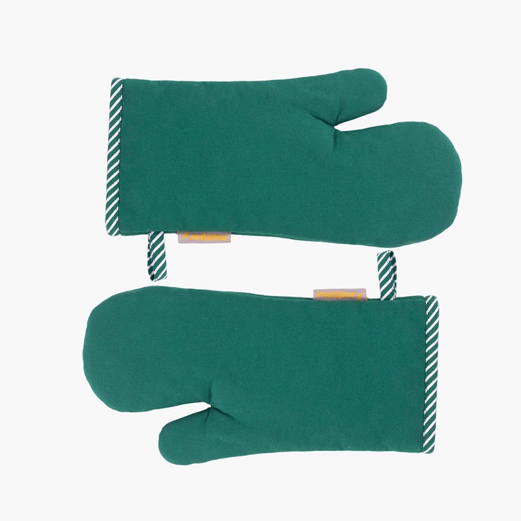 Handle the heat in style with this set of 2 cotton oven mitts, designed for comfort and reliable protection. Crafted from soft, durable fabric, they offer a secure grip and everyday ease in the kitchen.