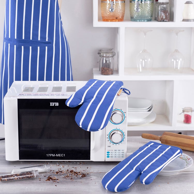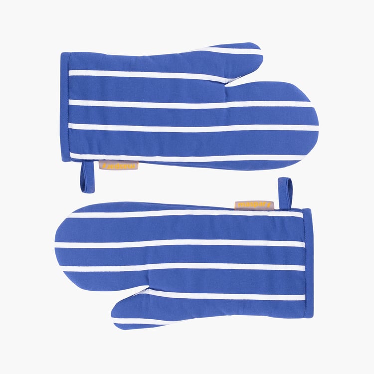 Handle the heat in style with this set of 2 striped oven mitts, designed for comfort and reliable protection. Crafted from soft, durable cotton fabric, they offer a secure grip and everyday ease in the kitchen.
