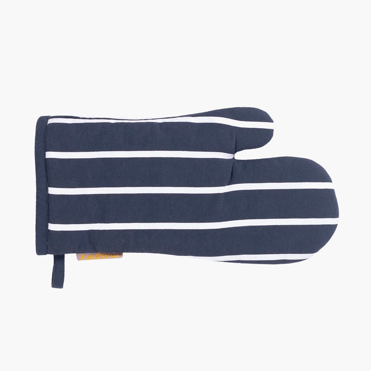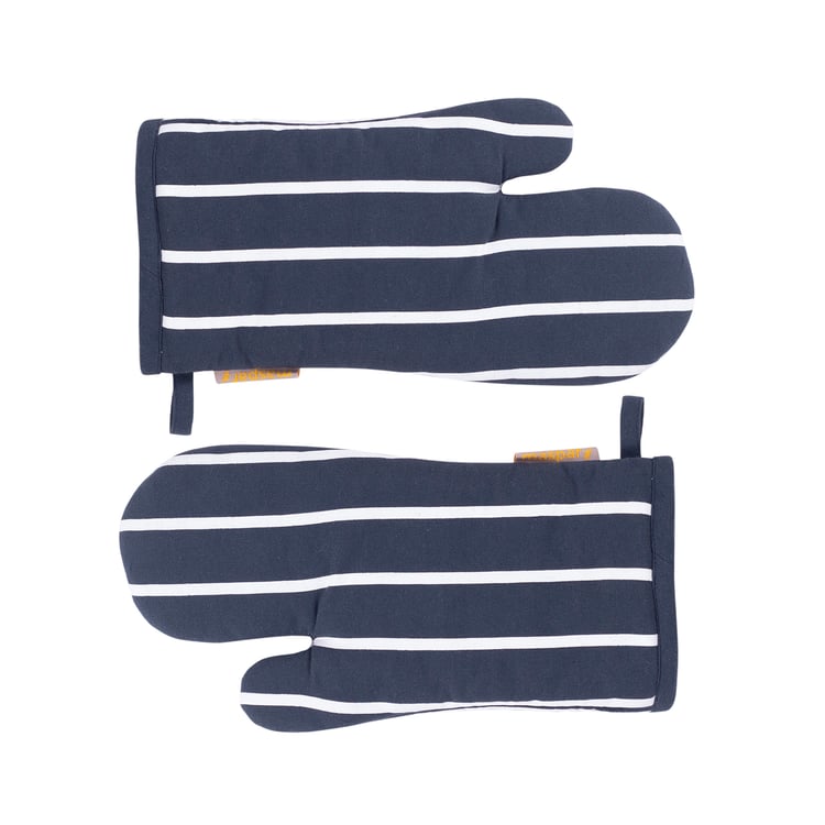 Handle the heat in style with this striped set of 2 cotton oven mitts, designed for comfort and reliable protection. Crafted from soft, durable fabric, they offer a secure grip and everyday ease in the kitchen.