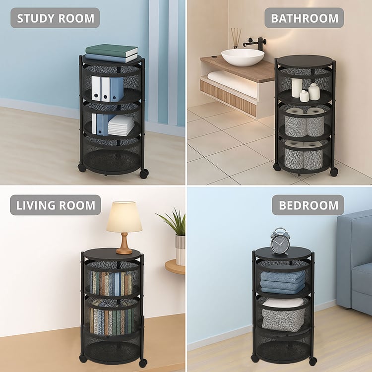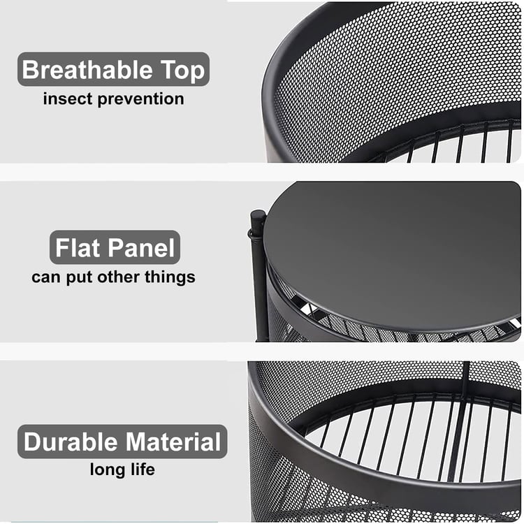 Designed for smart and efficient kitchen organisation, this 3-tier revolving storage trolley offers a multifunctional solution for everyday storage needs. Crafted from durable metal, it features breathable mesh baskets for airflow and insect prevention, a flat top panel for placing additional items, and a smooth swivel design for easy access. The modular structure makes it easy to assemble and clean. Ideal for storage in homes where space-saving and convenience matter.
