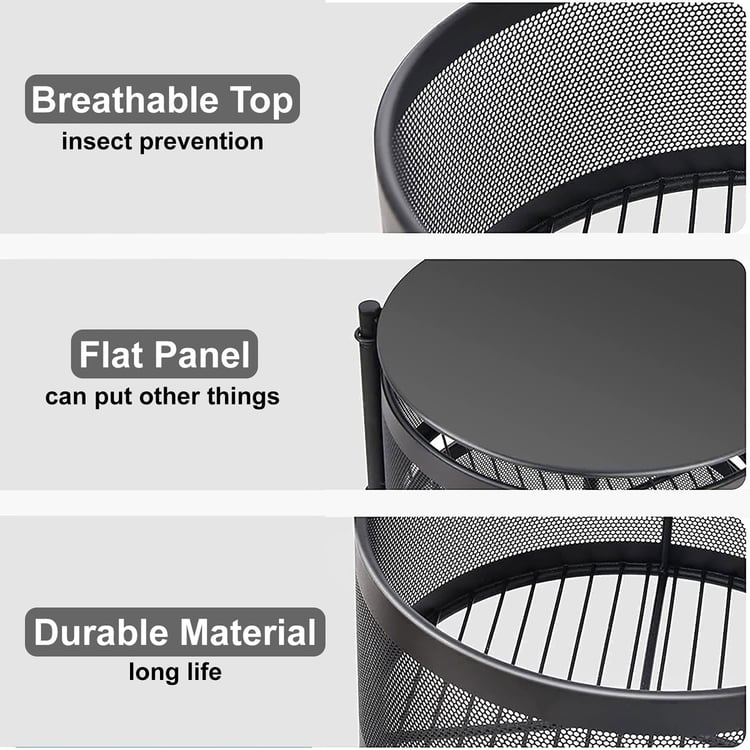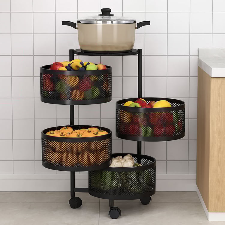 Created to maximise space and improve everyday organisation, this 4-tier revolving storage trolley with wheels provides a practical and versatile storage solution. Made from durable metal, it includes four breathable mesh baskets that allow airflow and help deter insects, along with a flat top surface for placing extra items. The smooth swivel design ensures easy access from all sides, while the modular build allows for simple assembly and effortless cleaning. This storage solution is well-suited for home use where efficient storage and ease of movement are essential.