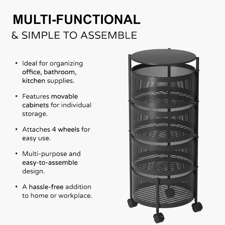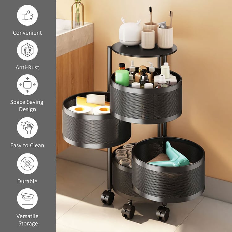 LUXE HOME Metal 4-Tier Revolving Kitchen Storage Trolley