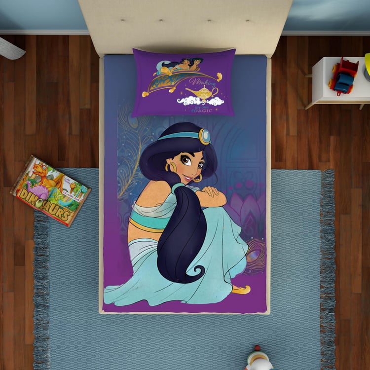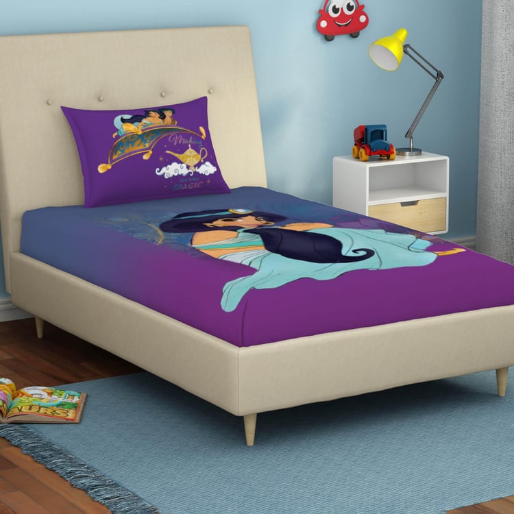 SPACES Disney Jasmine - Purple 180TC Cotton Single Bedsheet Set - 2Pcs