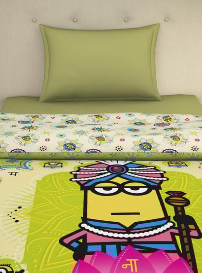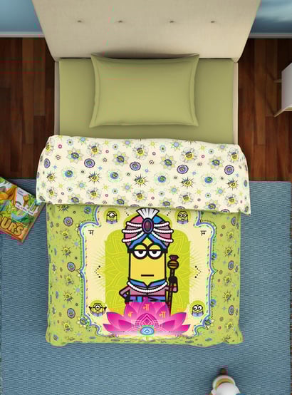 SPACES Universal Masala Minions Printed Cotton Single Bed Quilt - 180 TC