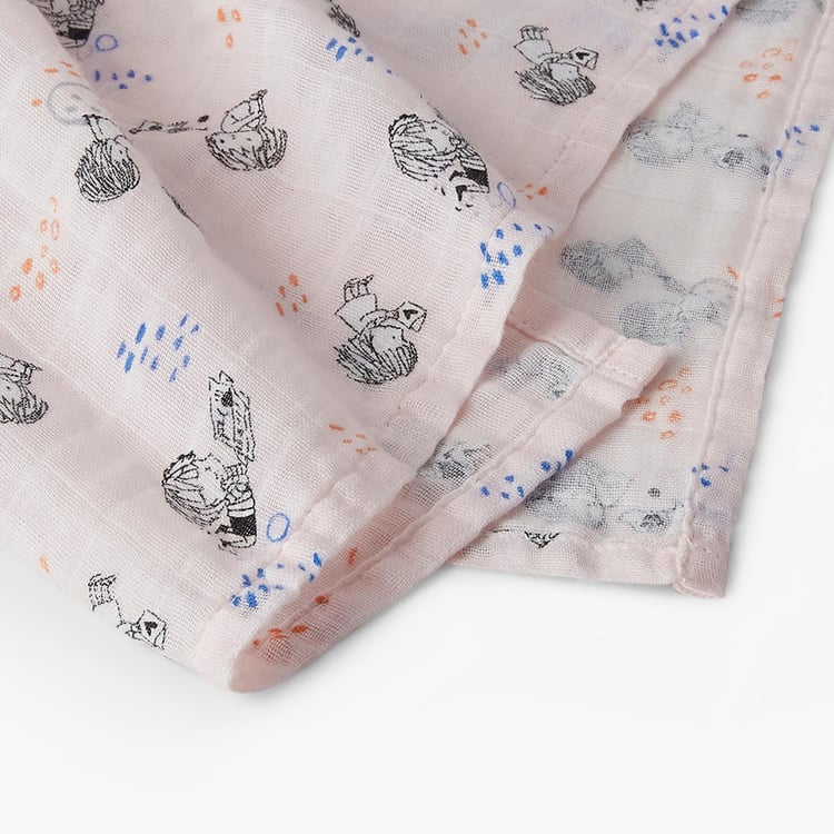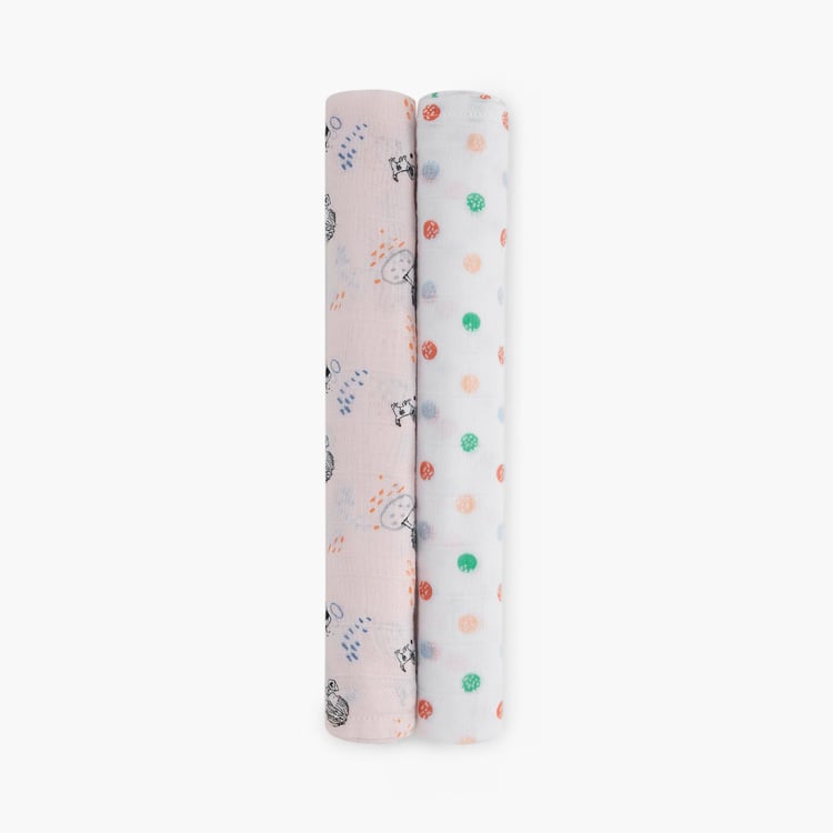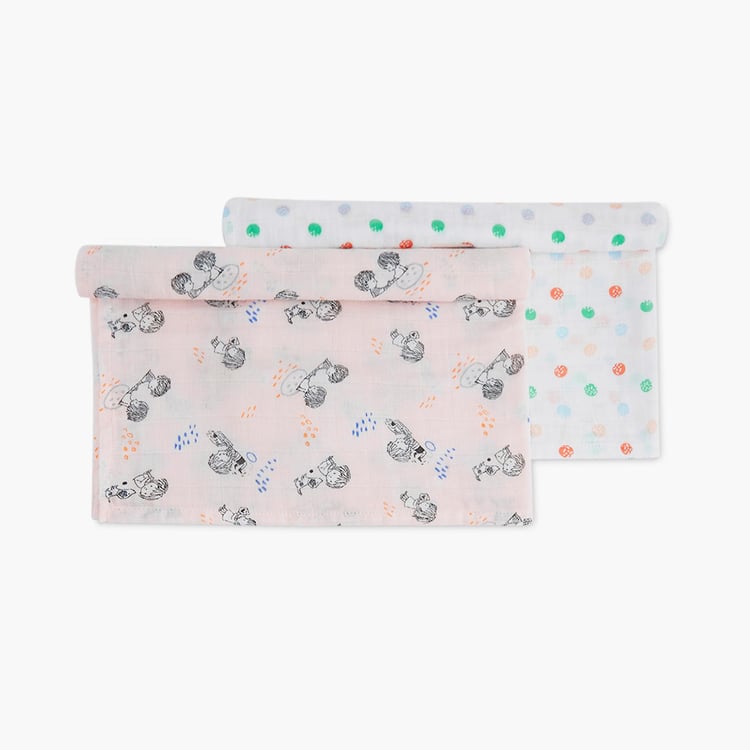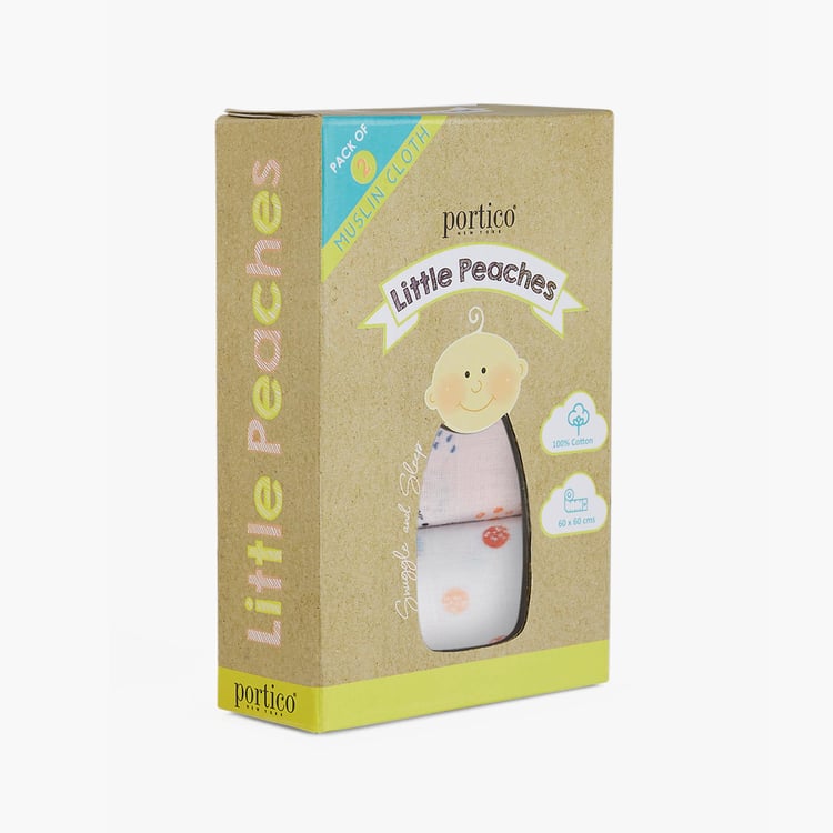 PORTICO Little Peaches Cotton Set of 2 Printed Muslin Cloth