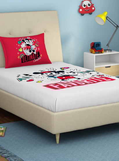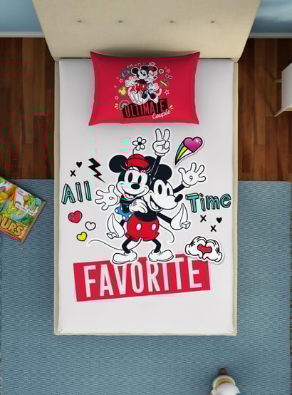 SPACES Disney Mickey - Grey 180TC Cotton Single Bedsheet Set - 2Pcs