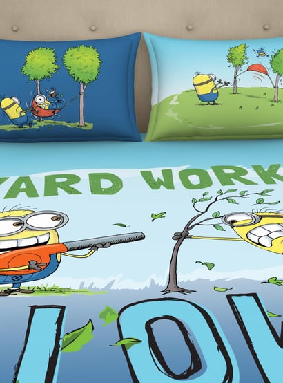 With a digital Minion print bringing a dash of quirk and contemporary edge to the scene, this double bedsheet set ensures snuggly comfort.