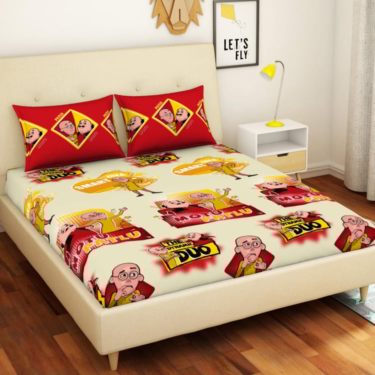 SPACES Viacom Motu Patlu Printed 3-Piece Bedsheet Set - 228 x 274 cm