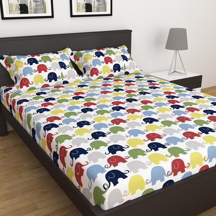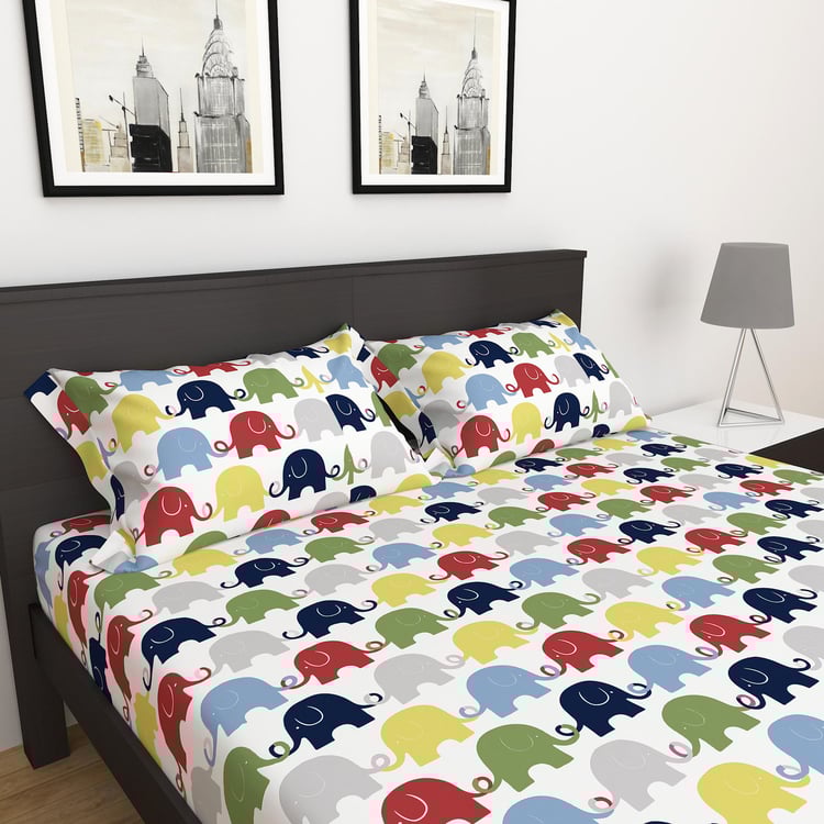 Slate Elephanterna Multicolour Printed 3-Piece Flat Sheet Double Bedsheet Set- 228x254cm- Cotton- 150TC