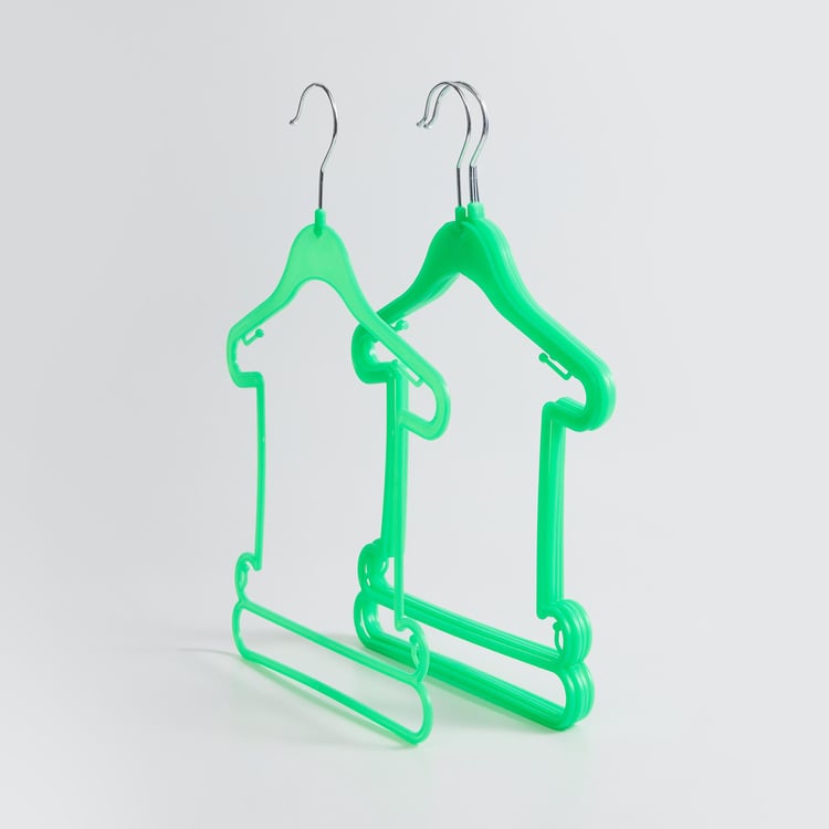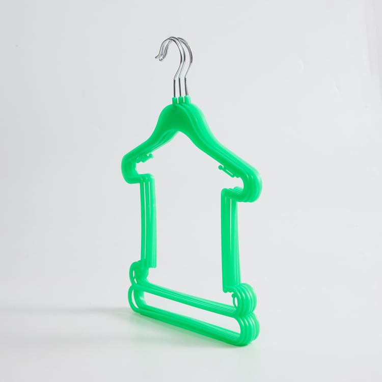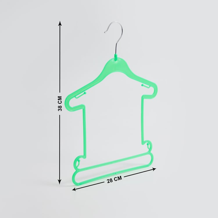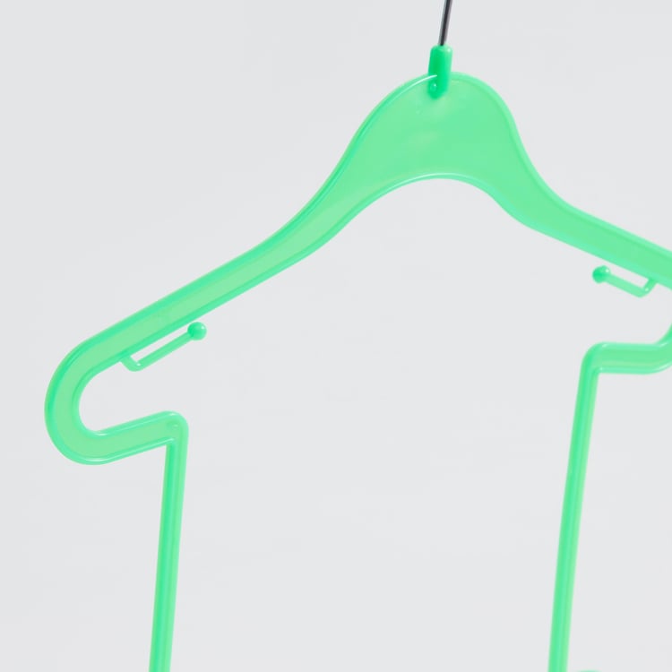 Organise your closet with this set of cloth hangers. Made of plastic, these hangers are durable and sturdy. They feature a metal hook to conveniently hang them in your closet.