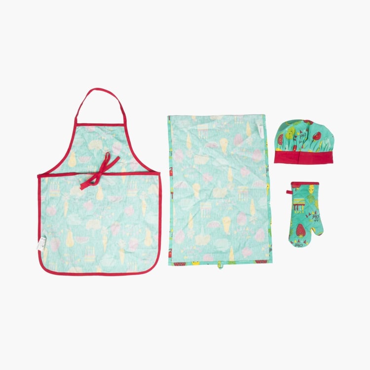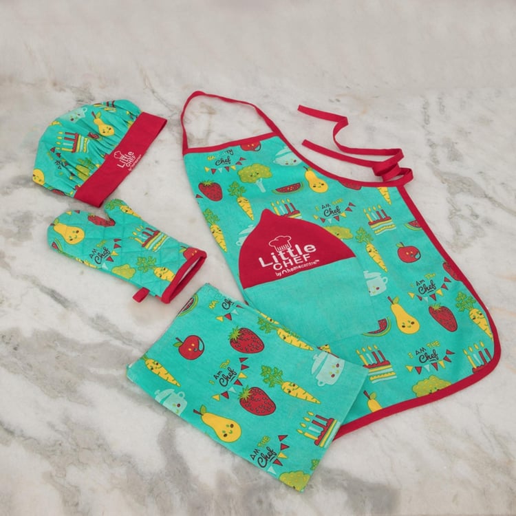 1 Kids Apron, 1 Gloves, 1 Cap , 1 Kitchen Towel