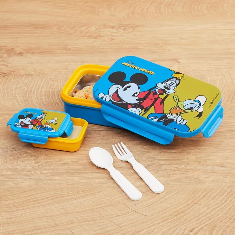 This plastic lunch box comes with an air-tight closure and a Mickey & Friends print that keep the food moisture free and spreads some cheerful vibes around.