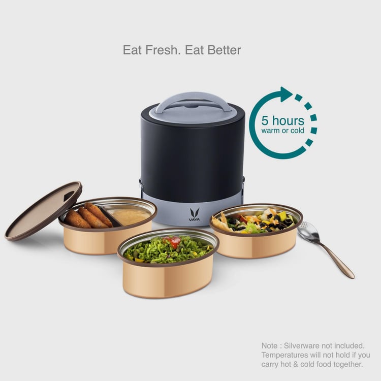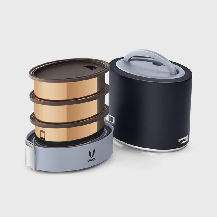 VAYA Tyffn Gold Colourblocked Stainless Steel Insulated Three-Tier Lunch Box - 1000ml