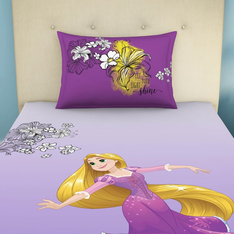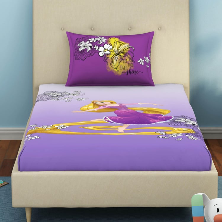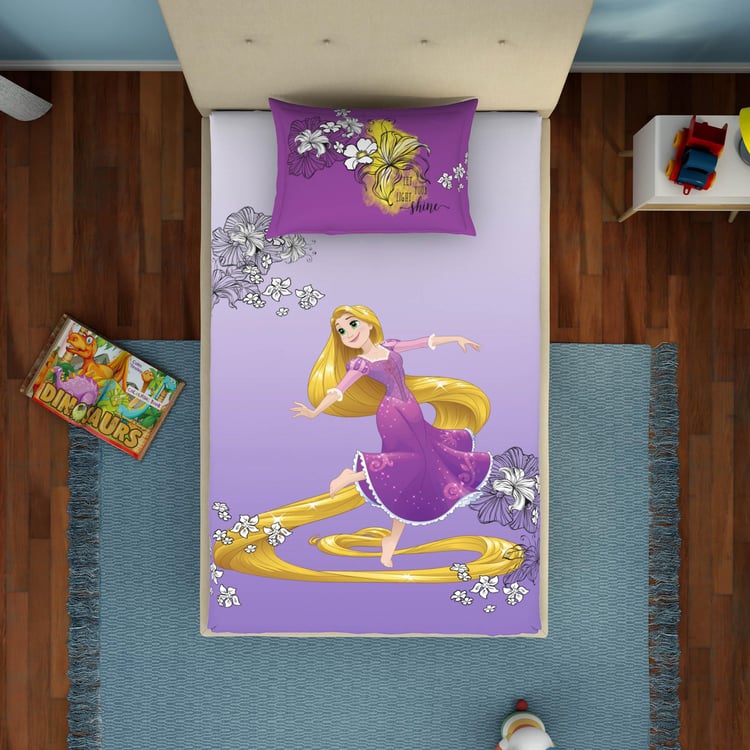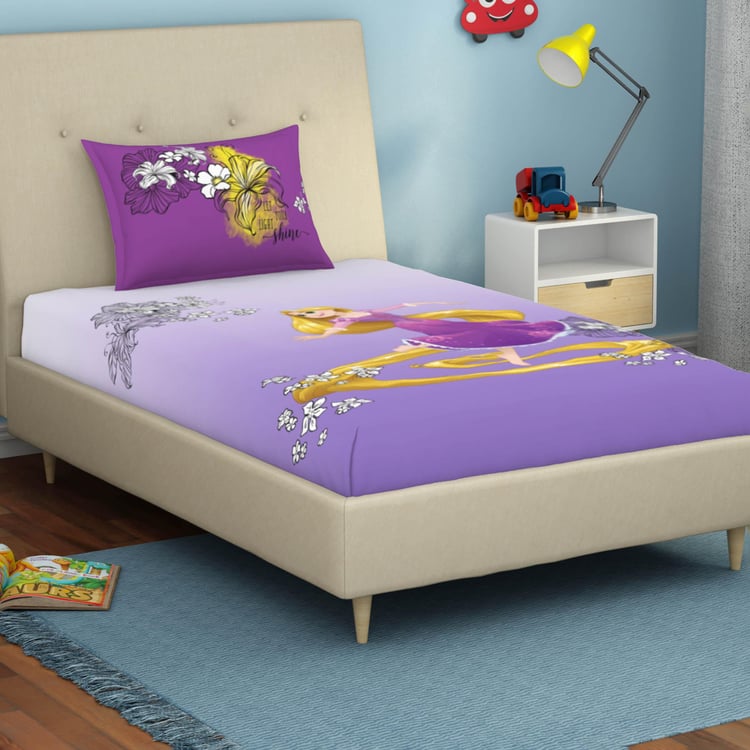 SPACES Disney Rapunzel - Purple Cotton Single Bedsheet Set - 2Pcs