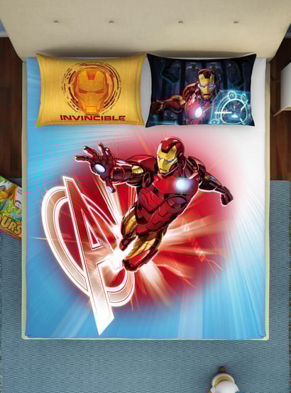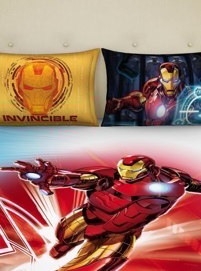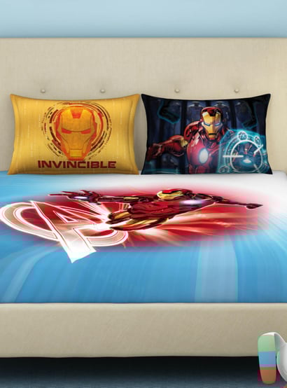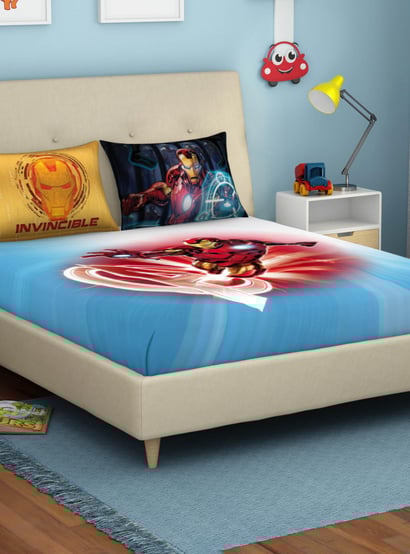 This vibrant and lightweight double bedsheet set of three pieces is defined by an Ironman printed design on the surface to impart a fresh appeal to your bedroom decor. Crafted from soft cotton, it includes a double bedsheet with a pair of pillow covers, featuring similar designs, to create an eclectic mix of comfort and style.
