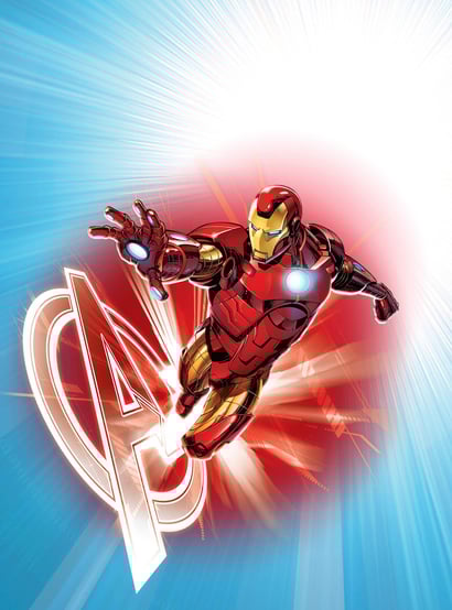 SPACES Marvel Ironman Blue Printed Cotton Double Bedsheet Set-3 Pcs