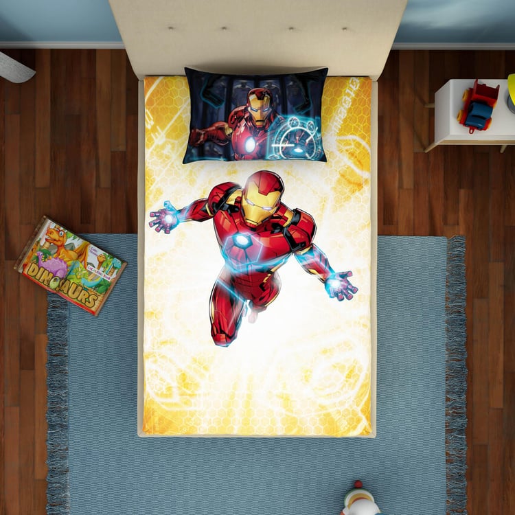 SPACES Marvel Ironman-Multicolour Printed Single Bedsheet Set - 2Pcs