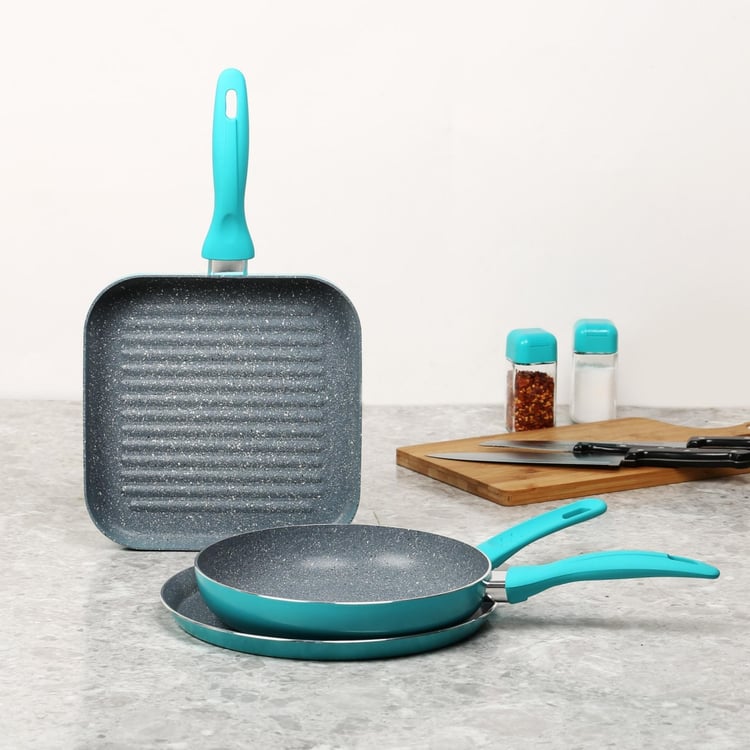 Introducing our Eco-friendly Cookware Set. It has been designed to perfection with several features such as a double layer non-stick marble finish, Induction compatible base, abrasion resistant surface, soft touch ergonomic handles and a nature inspired finish for aesthetic satisfaction. Together they make a power packed set to assist you efficiently in your daily cooking tasks.