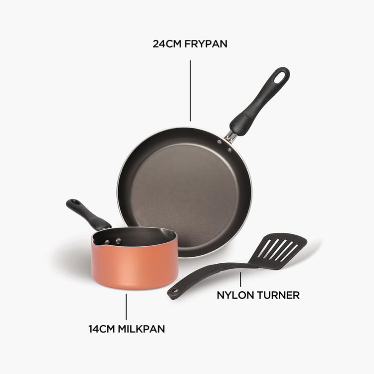 3-PC PROMOTIONAL SET (14CM/1QT OPEN MILKPAN + 24CM FRYPAN+ TURNER)