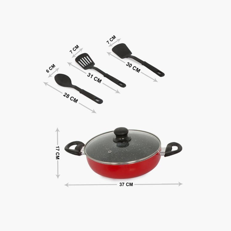Featuring a metallic make and a versatile mix of utensils, this Cookware Set makes for a highly functional unit.