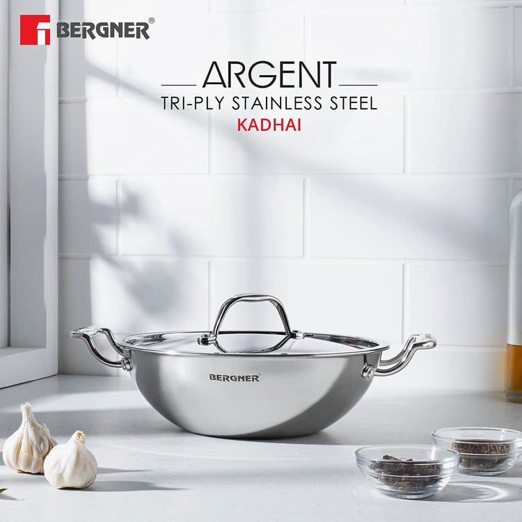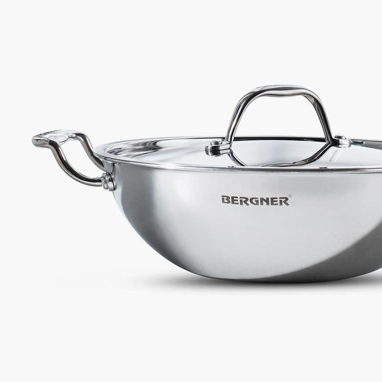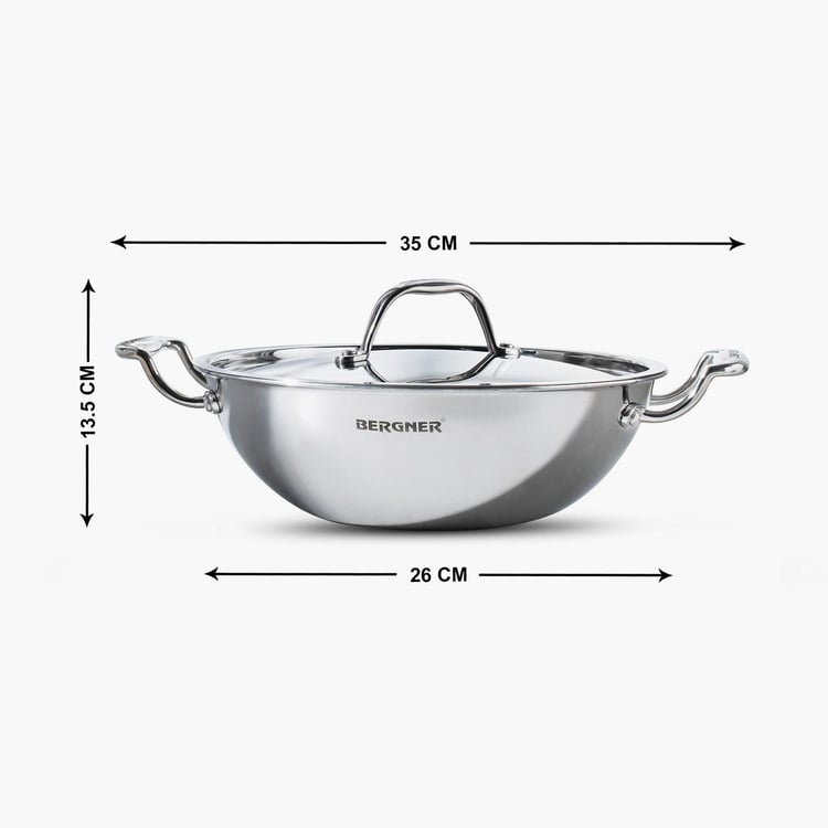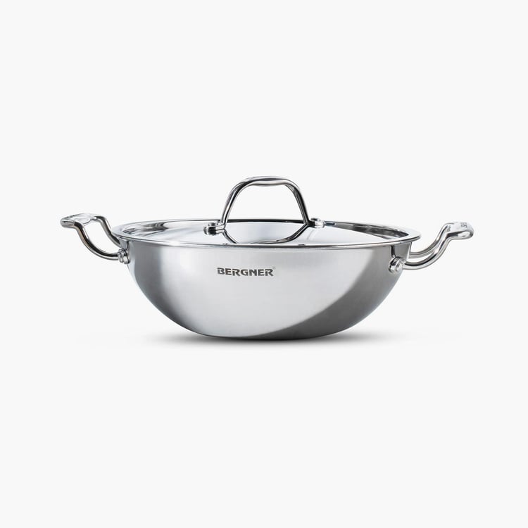 BERGNER Argent Silver Stainless Steel Deep Kadhai with Lid - 3.5l