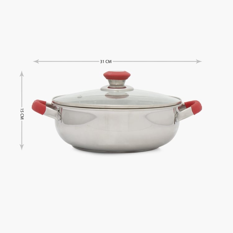 Elite-Magnus Solid Kadhais - Stainless Steel -3400 ml -Kadhai With Glass Lid 32 cm L x 25 cm W x 15 cm H -Silver