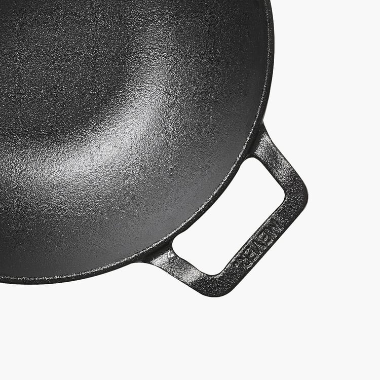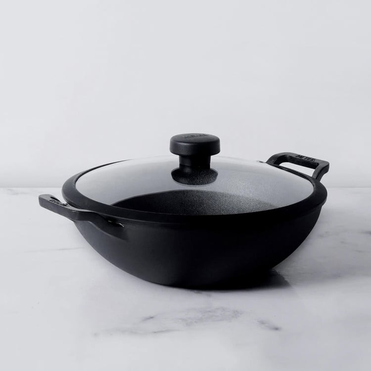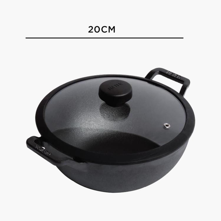 1 20cm Cast Iron Deep Kadai with Glass Lid