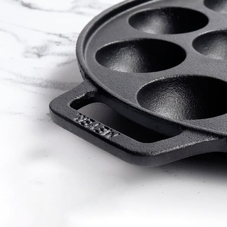 Totally toxin-free product. Pure iron ore material heats quickly and promote even heating throughout the fry pan body; saves cooking gas. Heavy-gauge construction for extra thickness and durability. No synthetic or chemical coatings were applied. Just pre-seasoned with 100% vegetable oil; a simple seasoning technique helps create a chemical-free non-stick surface over a period of time. Perfect round cavities/holes: easy to prepare golden & crispy paniyarams, appam, bondas, koftas and more. Adds an authentic Indian flavour to your food and can also be used for frying, searing, and browning foods. Ergonomically designed handle for the comfort of use. Ideal for outdoor cooking and campfire; can handle high heat cooking as well as direct contact with flames. Oven-safe up to 180c. Metal utensil safe. Hassle-free lifetime warranty. Pro seasoning tip: Though this is pre-seasoned, you need to season it frequently to get a naturally non-stick cooking surface. To season, brush the pan with vegetable oil and place it on the stove for 15 minutes under a medium flame or till it reaches the smoking point. Switch off the gas and let it cool down completely, then wipe away the excess oil and store it in a dry place. Always clean the pan after use. Pat dry and season it before storing it away.