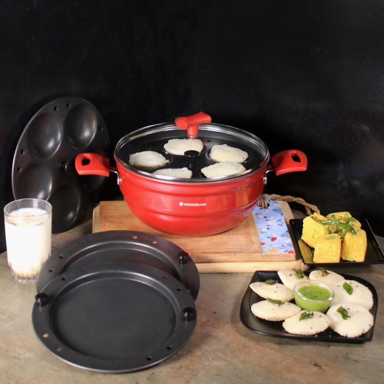 1 Kadhai,1 Lid,2 Idli Plates,2 Dhokla Plates