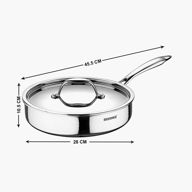 BERGNER Argent Silver Solid Stainless Steel Frying Pan with Lid - 20cm
